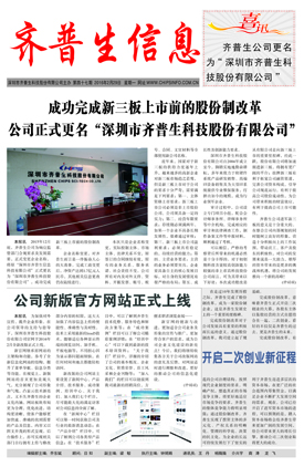 成功完成新三板上市前的股份制改革 公司正式更名“深圳市齊普生科技股份有限公司”